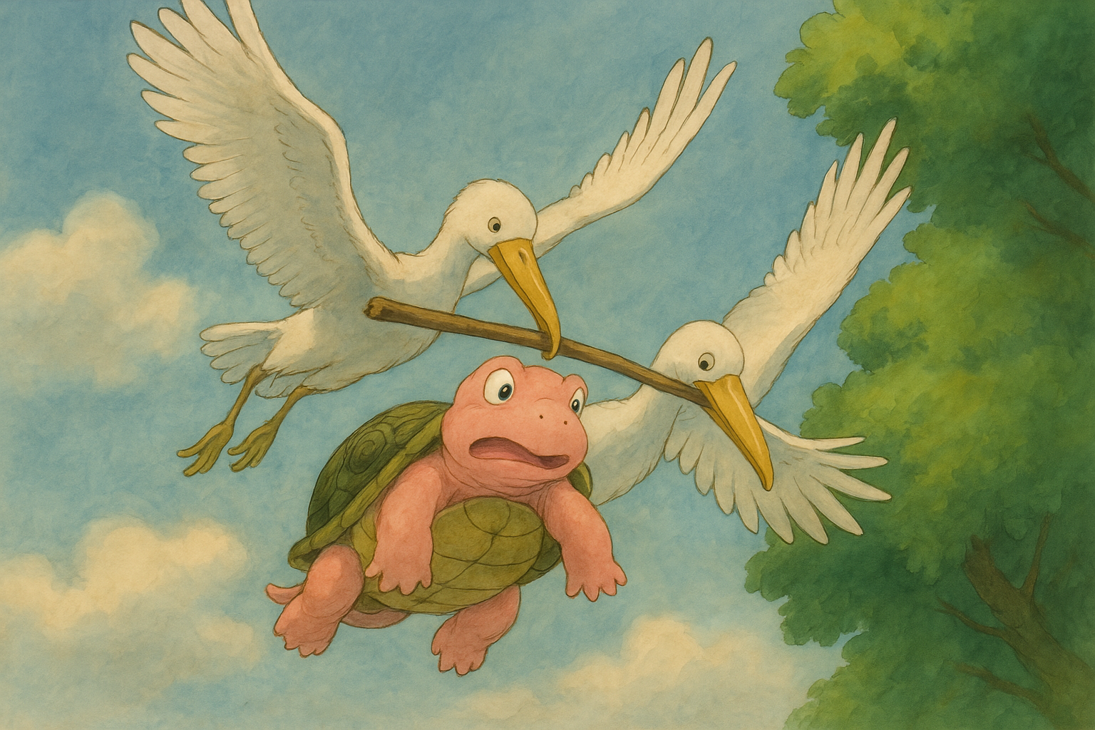 बहुत समय पहले की बात है, हिमालय की गोद में स्थित एक सुंदर झील ‘मानसरोवर’ में दो हंस और एक कछुआ रहते थे। वे तीनों बहुत अच्छे मित्र थे और एक-दूसरे के बिना रह ही नहीं सकते थे। दिनभर साथ खेलते, बातें करते और समय बिताते थे। उन तीनों की दोस्ती इतनी गहरी थी कि वे एक-दूसरे के सुख-दुख में पूरी तरह साथ निभाते थे।