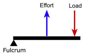 In this class of simple lever, the fulcrum always lies between load and effort.