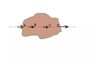 Consider a body in which a force F is acting on a body. On the line of action of force if the force F is removed from point A and placed at point B or C or D, the effect produced by the force will remain the same. This property of the force is called TRANSMISSIBILTY.