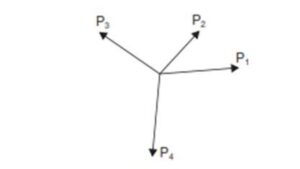 (v) Coplanar Concurrent Non-Parallel: When the forces in a force system lies in the same plane, acts through same point and line of action of all the forces meet at a point but have different directions.