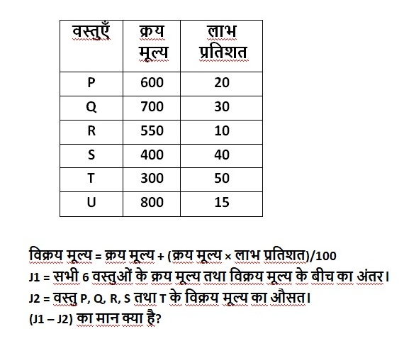 नीचे दी गई तालिका 6 वस्तुओं के क्रय मूल्य तथा लाभ प्रतिशत को दर्शाती है।