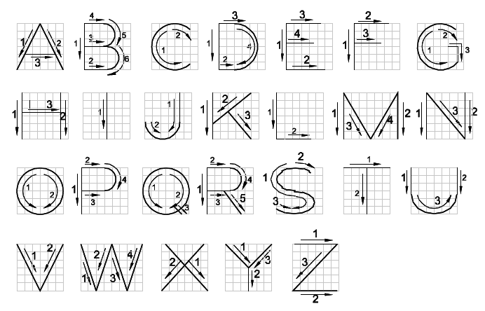 The direction of movement of the pencil point to make the letter and different strokes to be executed are natural and do not require memorizing, but the beginner must keep in mind that it is a decided mistake to practice lettering before he/she knows the proportion and order of strokes of the letter he/she is to execute.