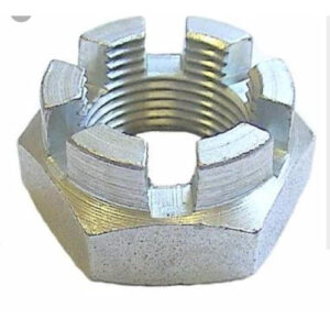 It consists of a hexagonal prism having a circular collar at the top with a central threaded hole, six slots are cut in the collar which are radially opposite. This nut is used to provide as a hold on nut which is subjected to sudden and variable vibration such as on piston rod, scooter wheel etc. A pin is fixed across the two slots which passes through the bolt after tightening the nut in position. Thus the nut is prevented from becoming loose.
