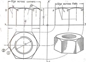 It is a general purpose nut used mostly on fasteners. It has six surfaces having hexagonal shape, it is why it is called hexagonal nut. The nuts are rounded off or chamfered at an angle of 30° but on one side only. Due to rounding or chamfering, an arc is formed on each vertical face and a circle is thus formed on the top surface of nut.