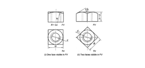 The nut having a square shape is known as square nut. This type of nut is usually used in conjunction with the square headed bolt. The corners of the square nut are also chamfered in the same way as for hexagonal nut.