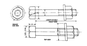 The bolt with a hexagonal head on one side and threaded on the other end is called bolt. The bolt may be threaded throughout its length or partly threaded.