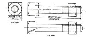 It is another common form of bolt. The contact area of the head with the part to be tightened is comparatively small as compared to hexagonal nut. It is generally used where the head of the bolt is to accommodated in a recess which is itself of square form. The head rests in the square recess with little clearance. When the nut is tightened or screwed off, the square recess prevents the head from turning.