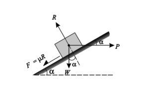 P (cos α + tan Φ.sin α) = W (sin α – tan Φ.cos α)