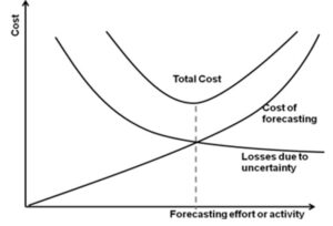 Efforts in forecasting activity involves two types of costs. While more effort in forecasting causes increased cost due to data collection and analysis; lesser forecasting activity involves lost revenue which may be due to unplanned labor, material, capital cost. Therefore a balance should be maintained in forecasting effort.