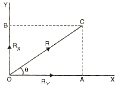 Let a force R be resolved in x and y directions makes an angle θ with the x axis. Let the force R be represented by line OC and components of the force R along X and Y directions be Rx and Ry. The components Rx and Ry are represented by line OB and OA respectively. Now complete the rectangle OACB.