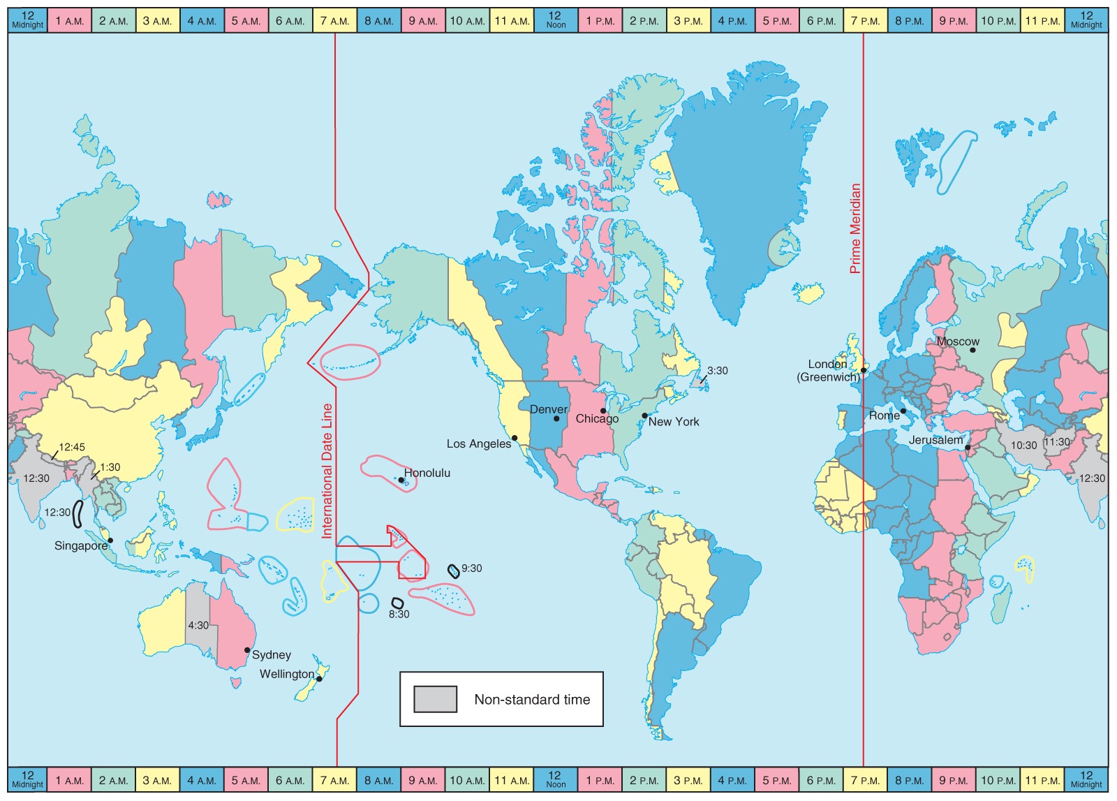 • To avoid all these difficulties, a system of standard time is observed by all the countries. Most countries adopt their standard time from the central meridian of their countries.