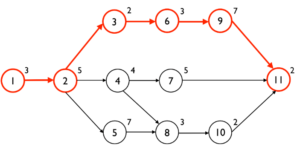 2. Path B = (1-2)-(2-4)-(4-7)-(7-11) = 3+5+4+5+2 = 14 days