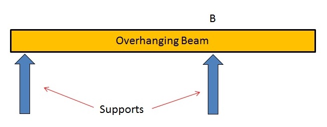 An overhanging beam is one in which the supports are not situated at the ends i.e. one or both the ends project beyond the supports.