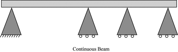 A continuous beam is one which has more than two supports. The supports at the extreme end and right are called the end supports and all the other supports, except the extreme, are called Intermediate Supports.